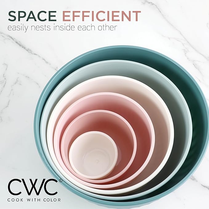 • Cook with Color 12 piece plastic mixing bowl set - non slip bowls with lids; easy to clean, sturdy mixing bowls.