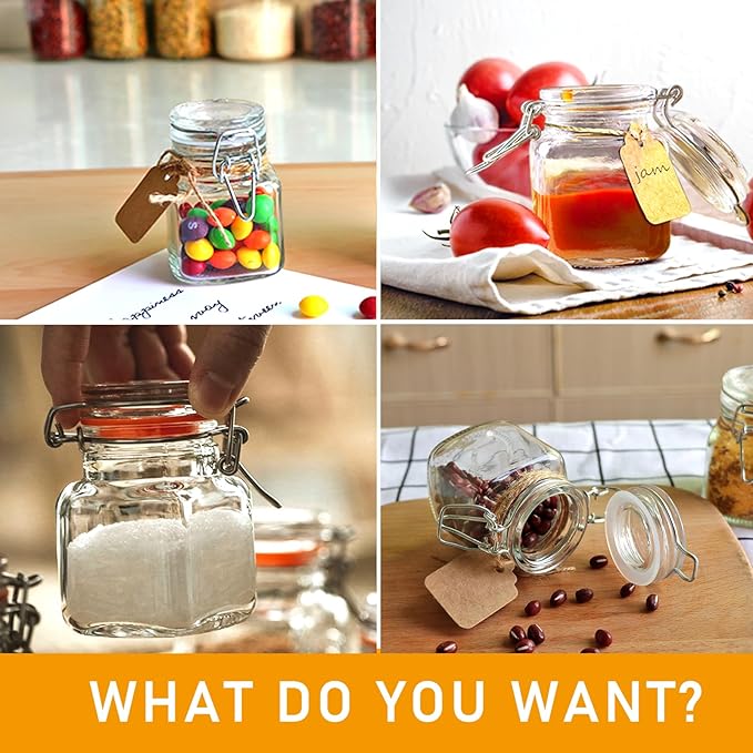 • [Great Value Glass Jars] : Made from thick, food-grade glass spice jars material, these durable jars protect contents from moisture. The square shape fits neatly on shelves, making these small jars with lids 4 oz a space-smart storage upgrade.