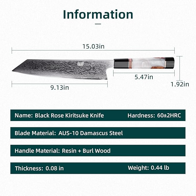 • [High Quality Material] AUS-10 damascus steel blade ensures top-notch sharpness and long-term durability for effortless slicing, dicing, and chopping.