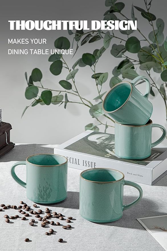 - 【Coffee Mugs Set of 4】The 14oz coffee mugs feature a strong and sturdy handle, ensuring a firm grip when in use. The stable base design is suitable for various surfaces, effectively reducing the risk of spills. Its excellent insulation performance maintains the ideal temperature for tea, coffee, and cocoa, enhancing your drinking experience.