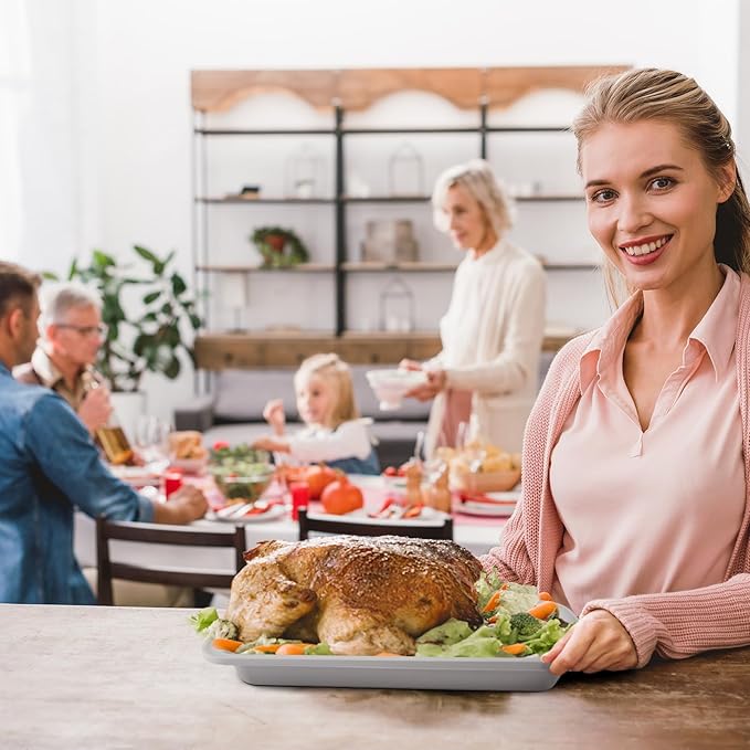 • IDEAL BAKEWARE GIFT: Great alternative to aluminum pans and coated pans, this versatile, high-quality silicone baking pan meets all the cooking, serving and storage needs of baking lover. Makes a great gift for Christmas, birthdays, Mother's Day, Father's Day and New Year's Day!