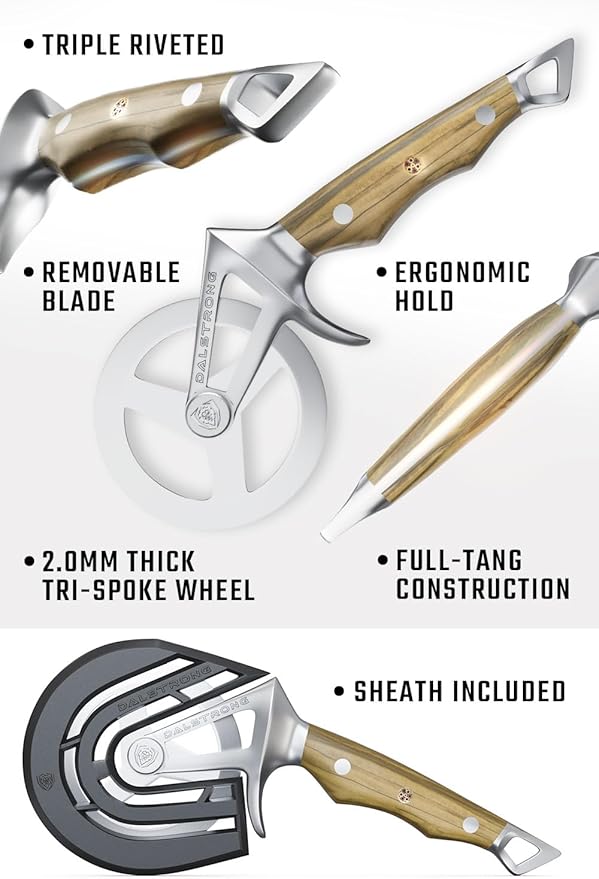 - PROFESSIONAL QUALITY: Featuring a ferociously sharp, reinforced, tri-spoke rotary wheel slicer design, the Dalstrong Orbit Razor Pizza Wheel offers drastically reduced drag to quickly and smoothly sail through even the heartiest and freshest thick or thin pizza crusts, flakey pastries, loaded flatbreads, quesadillas, pasta dough, and more with convenience and no effort