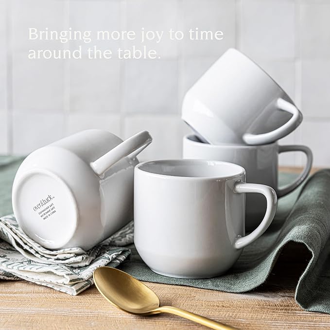 over&back Coupe Porcelain Coffee Mugs - 4-Piece Mug Set - Enjoy the Perfect Cup of Coffee, Tea, Latte, and More - Glossy White - 14 Oz