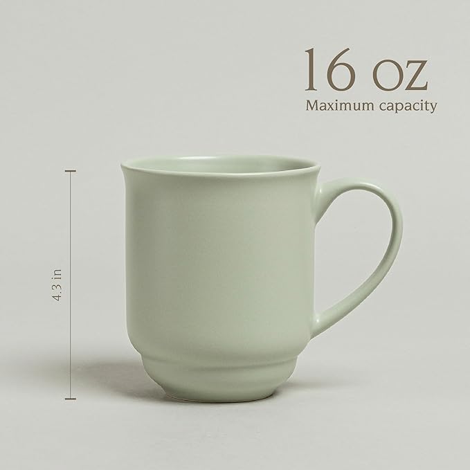 over&back Rim Stoneware Coffee Mugs - 4-Piece Mug Set - Enjoy the Perfect Cup of Coffee, Tea, Latte, and More - Semi-Matte Sage - 16oz