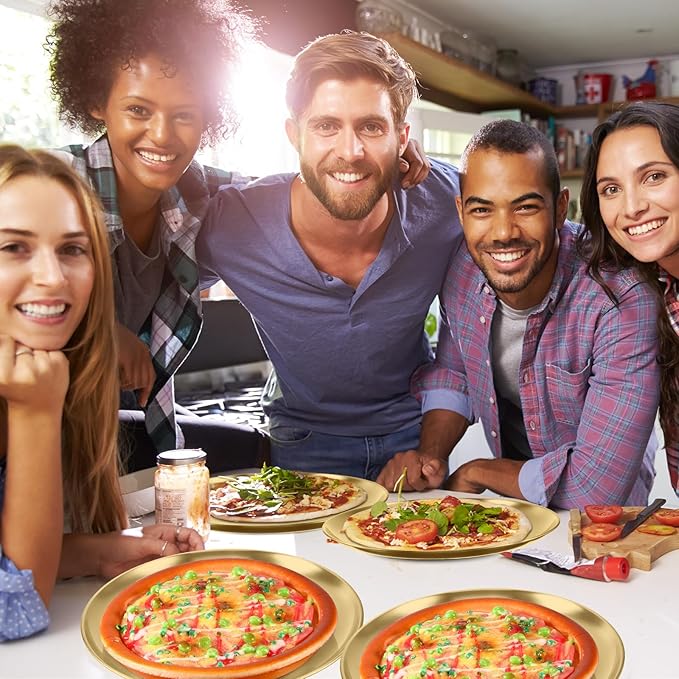 • Package Contents: there are 8 pieces of stainless steel plates in gold color, the sufficient amount can meet your daily use and replacement. not just for oven use, our pizza pans can also be applied for serving your delicious creations. invest in the Stainless Steel Pizza Pans today and experience the ease of baking and serving your favorite pizza creations