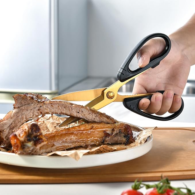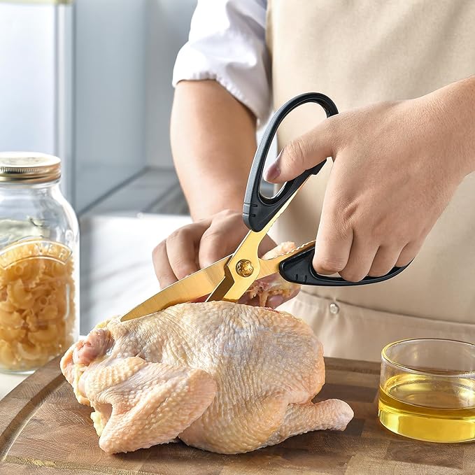 • HEAVY-DUTY PERFORMANCE: Reinforced design and materials deliver reliable cutting performance for various foods and materials in the kitchen. You can spatchcock a whole chicken or turkey with these shears.