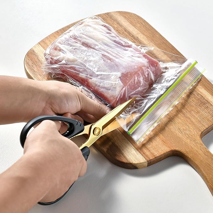 Golden Titanium Coating Kitchen Scissors with Blade Cover, Stainless Steel, Comfortable Handle, Heavy Duty