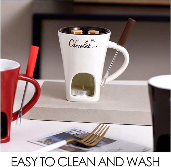 • Complete Fondue Set: Each ceramic chocolate fondue mug comes with a fork, making it easy to enjoy your favorite melted treats. Ideal as ice cream melting pots or cheese melting pots, this set is essential for any dessert lover