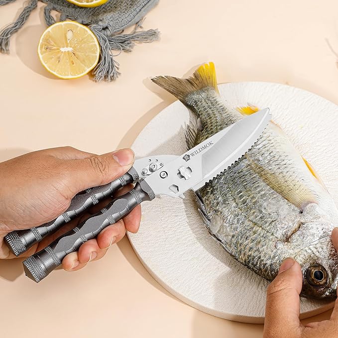 WILDMOK Heavy Duty Poultry Shears - 8.5 Inch Multi-function Stainless Steel Poultry Outdoor Shears, Ultra Sharp Kitchen Scissors for Outdoor Camp, Grey