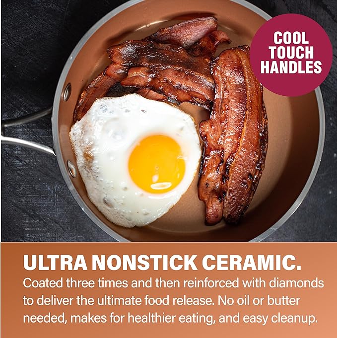 • GOTHAM STEEL COOKWARE: With over 30 million happy customers, Gotham Steel has revolutionized kitchens across the world with the introduction of the nonstick ceramic copper cookware! New for 2025, this set has been improved in every area including the nonstick coating, stay cool handles, exterior finish and durability, including adding diamonds to the surface to ensure the pan doesn’t scratch!