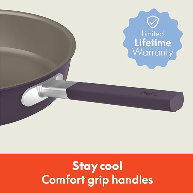 bella 9 Piece Ceramic Nonstick Cookware Set, Fits-anywhere™ Kitchenware w EverGood™ Coating, Dishwasher & Oven Safe, All Stovetops Compatible, Stackable Design, Cool Touch Handles, Plum