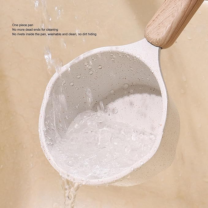 • Easy to Use: Small saucepan with dual pour spouts is easy to pour for right and left hand use. The wooden handle provides a comfortable and non-slip grip, protect your hands from the heat. The white enamel cookware will add great touch to your kitchen