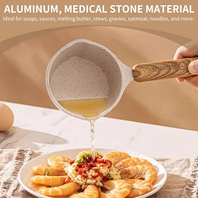 • Aluminum Construction: The saucepan with pour spout is made of aluminum, ensuring even heat distribution and efficient cooking. The nonstick milk pan is perfect for your daily little cooking needs, this small saucepan is compatible with electric induction and gas stovetop.