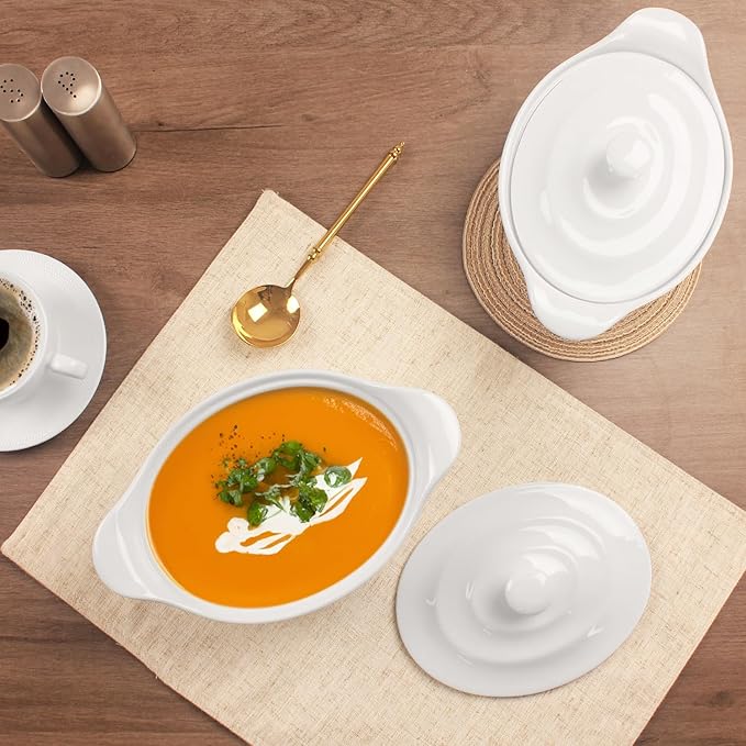 Casserole Dish 25 oz, French Onion Soup Ceramic Bakeware Set with Lids, Ceramic Mini Cocotte Set, Baking Dish with Lids and Handles, Microwave, Dishwasher, Oven Safe 9.6 Inch