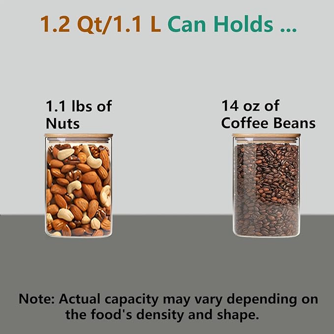 • [Safe to Use] The airtight canisters set is made of food-grade high borosilicate glass, lead-free, non-toxic. The lid is made from natural bamboo, adding an aesthetic touch to practicality. The glass is dishwasher-safe, but we recommend handwashing the lid for optimal care.
