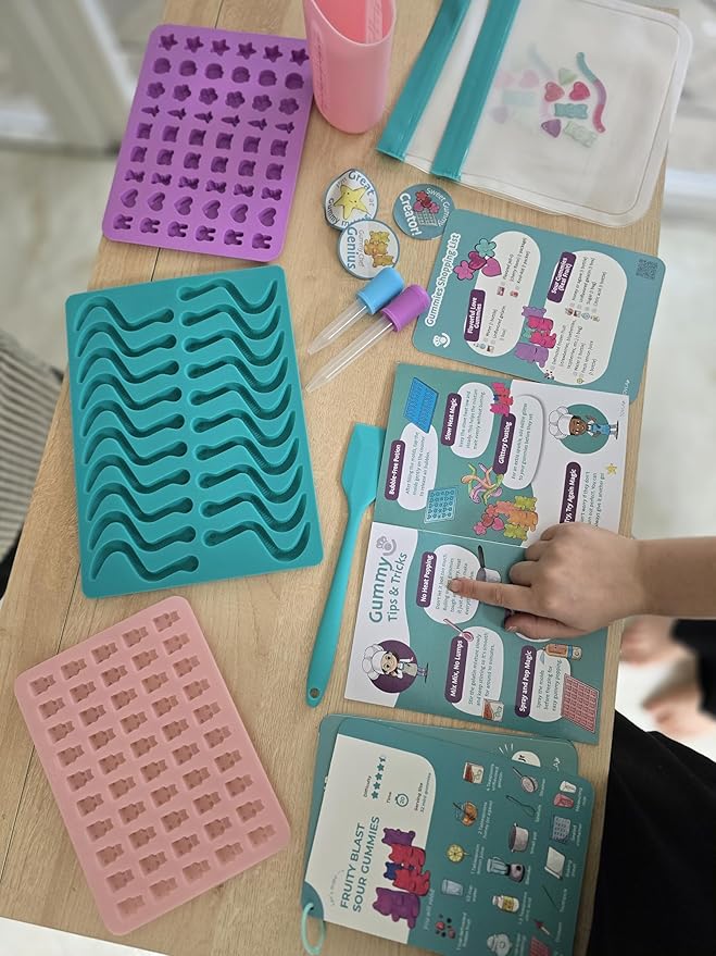 • Encourages Creativity & Independence: Kids can customize their gummies with different shapes and flavors. The included affirmation stickers celebrate their candy-making achievements, while the educational booklet offers gummy history, fun facts, and tips to boost creativity.