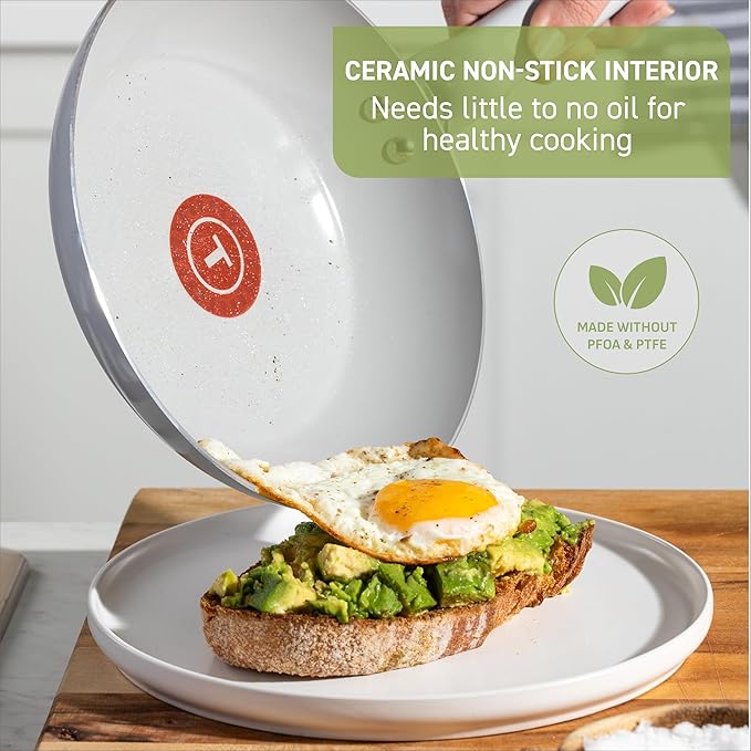 • This ceramic cookware 5-quart sauté pan has a large cooking surface with a helper handle designed to ease batch cooking and one-pot family meals. Explore your inner chef