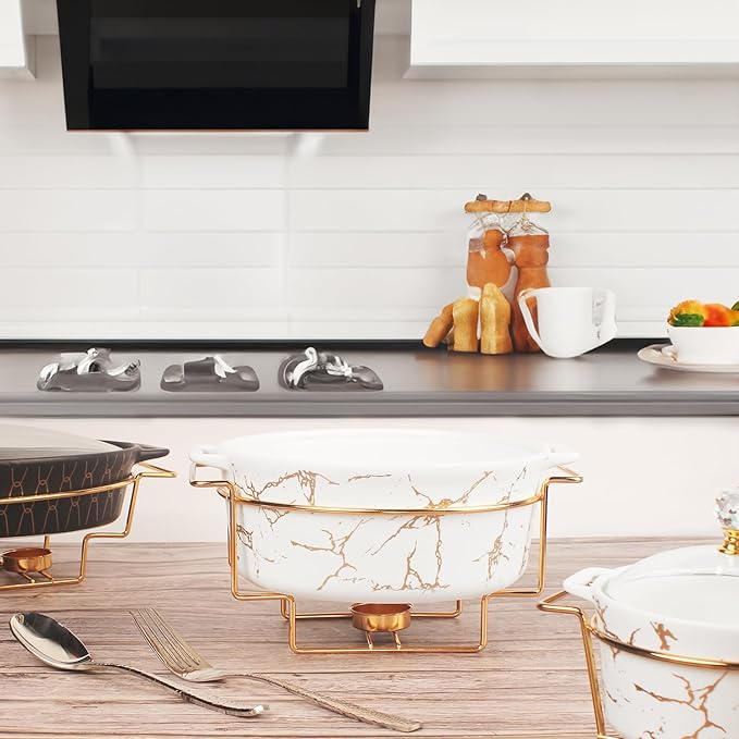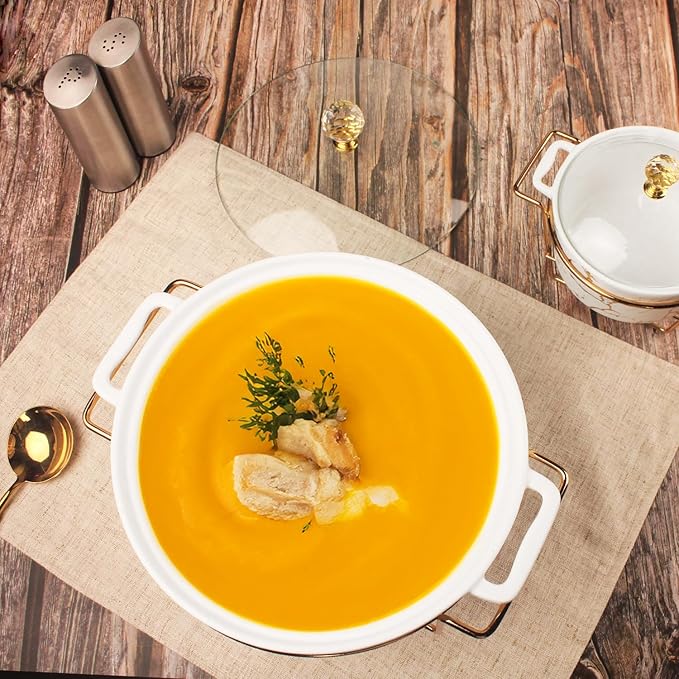 • Enjoy Delicious Food: The tray features a gold-plated metal base with two holders for tea-light candles. Classic white soup tureen blends with every style of table and home decor.