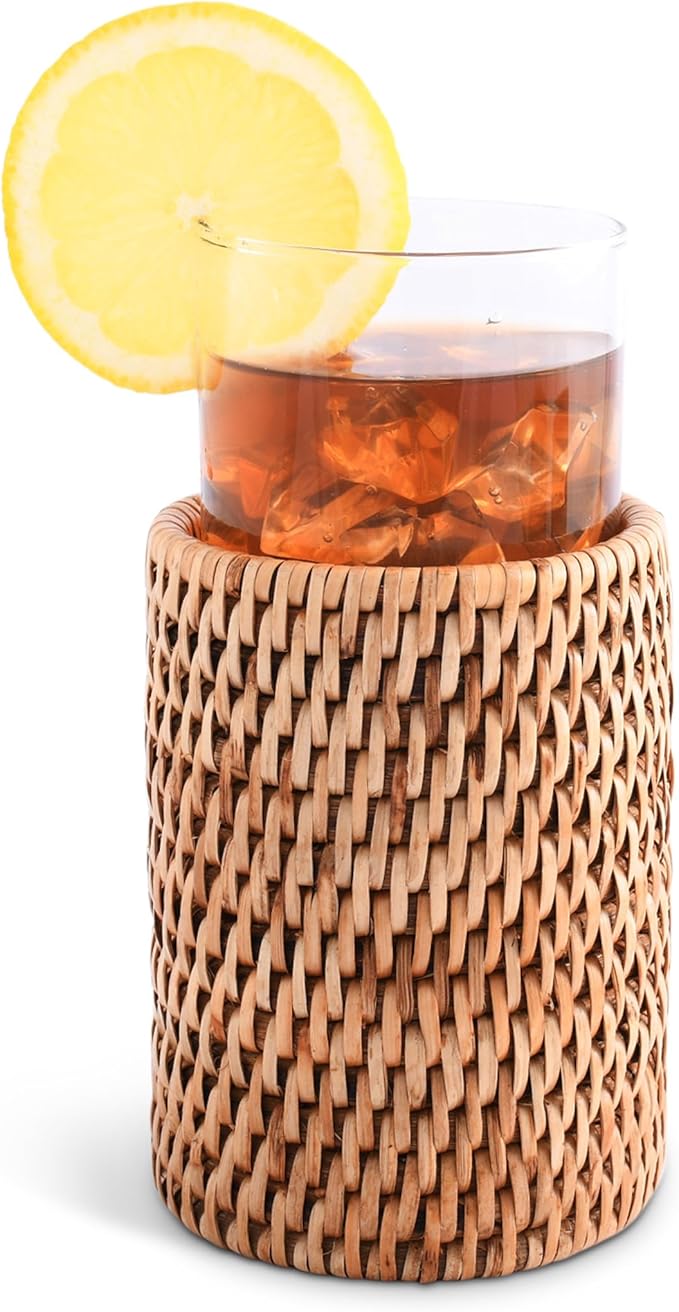 • Versatile & Portable: This rattan glass is ideal for various occasions, whether you're lounging by the pool, sipping coffee on an ottoman, or enjoying a soda while camping. Its tall design makes it easy to transport and store.