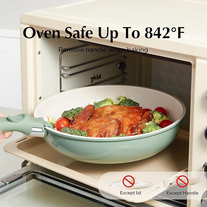 Redchef Ceramic Cookware Set, Removable Handle Pots and Pans Non-Stick, Rv Cookware Set, Non-Toxic Pots and Pans Set No PFAS, PTFE, PFOA, Detachable Pots and Pans, Dishwasher & Oven Safe (Green)