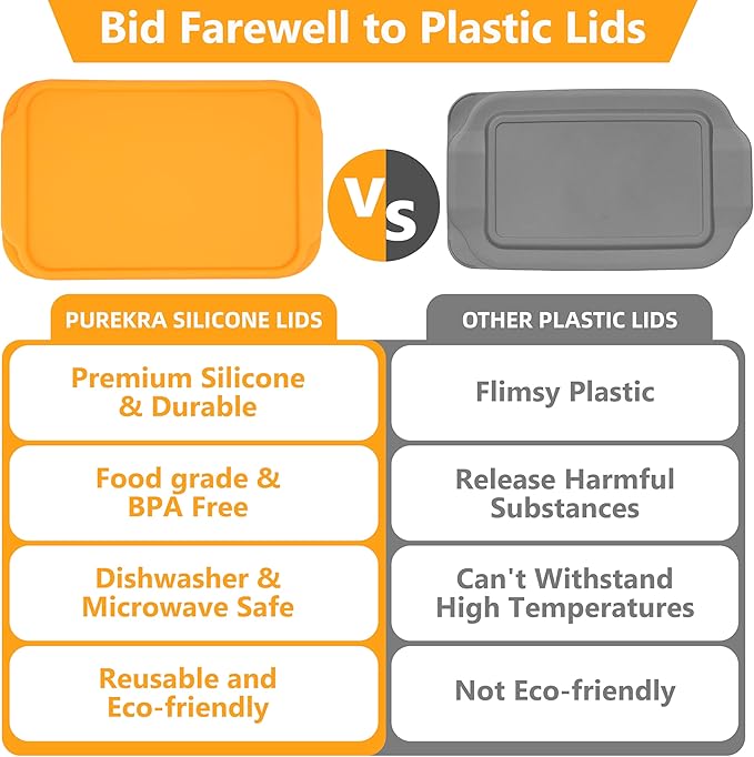 • 💫Leak-Proof Design - Purekra silicone lids fit Pyrex Glass Baking Dish perfectly. Tight fit prevents spills and leaks. Non-porous surfaces will not absorb smells or flavors.