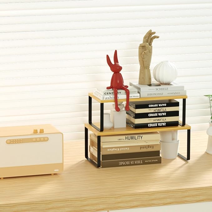 • Stackable and expandable. Place the two shelves stacked, nested, side by side, or in an L shape to fit your space.