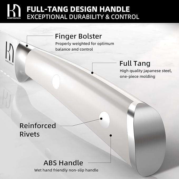 • 【Full Tang Handle for Enhanced Durability】 Our bread knife features a full tang construction, ensuring superior durability and stability. The handle is made of wet hand-friendly non-slip ABS material, allowing you to slice through bread with ease and safety, even when in contact with water.