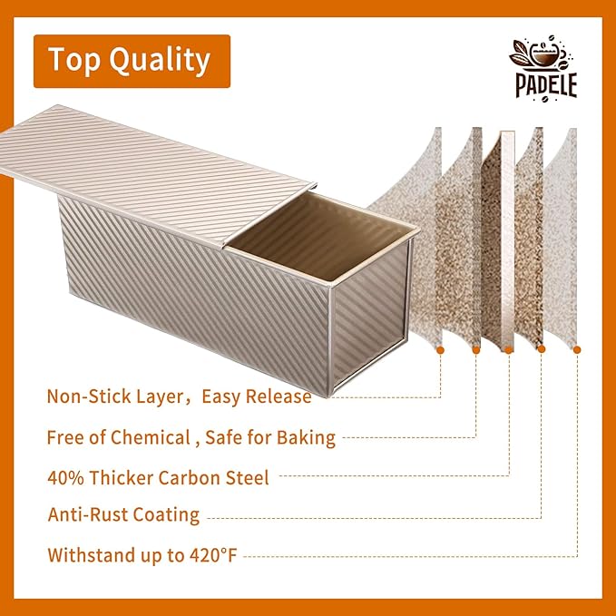 • 【How to use ?】Before placing the dough in the long bread loaf pan, coat the inner wall with oil. While these loaf pans with lids are dishwasher safe, it's best to hand wash them for optimal durability. Avoid using sharp objects or harsh cleaning agents. To ensure thorough drying, place the toast box in the oven after washing to remove all moisture from the corners.