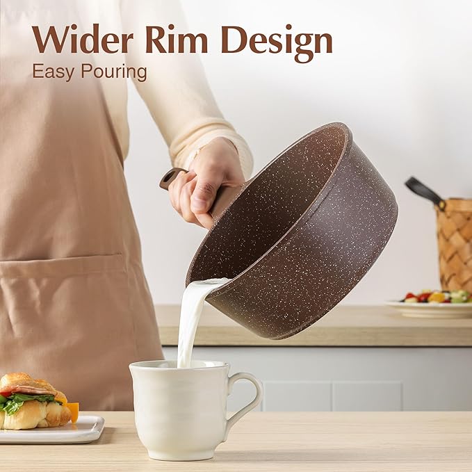 • Versatile and Convenient - Size: 8" diameter, 3.4" deep, 2.5 Quart. This induction cooking pot with lid is ideal for small portions of noodle, rice, soup, sauces, oatmeal, and grins. Ideal Size for 2-3 people meal and easy for storage. Unique lip rim design of the milk pan allows drip-free pouring.