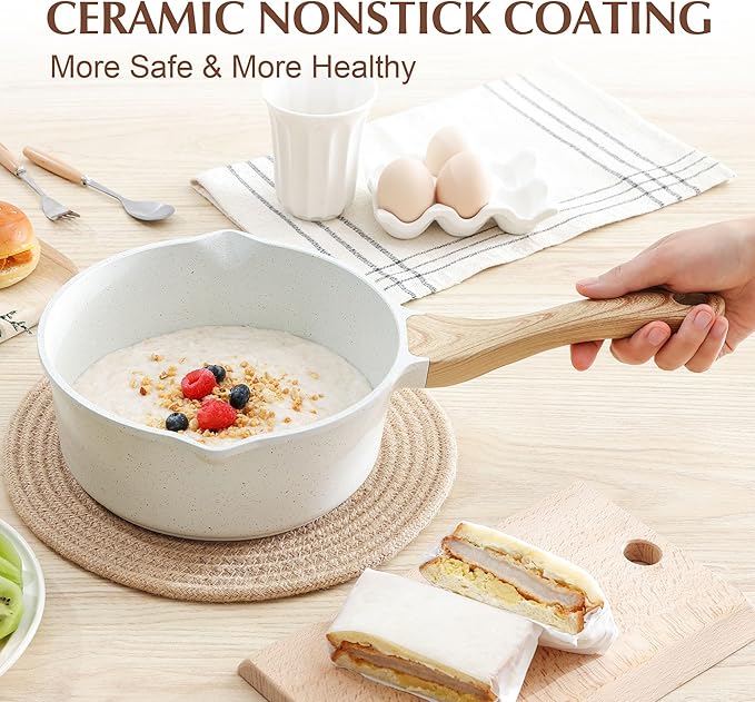 • Safe & Healthy - SENSARTE natural ceramic nonstick saucepan is free of intentionally added PFAS, PFOA, lead, and cadmium. Safe cooking for your family and healthier diet with less oil.
