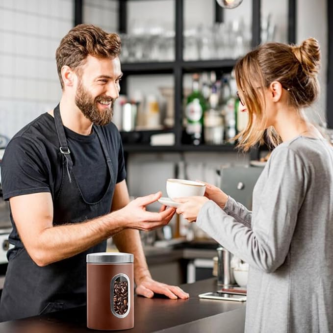 • Transparent Window: Our kitchen canisters are designed with transparent windows. The clear window shows what in it or how much content is left, you don't need to open the cover only a glance at it is ok. Perfect canisters set for kitchen counter.