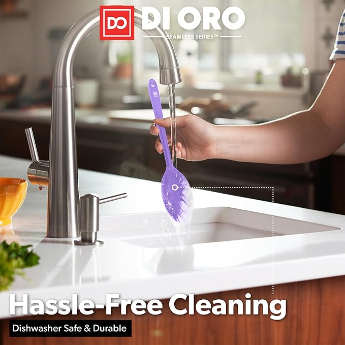 • ONLY THE BEST – By popular demand, we have added a 2-Piece Silicone Spoon Set to our Award-Winning Seamless Series line of kitchen utensils. The DI ORO Seamless Series Slotted and Solid Spoons are made with food grade, BPA Free, and LFGB Certified Silicone. Built to withstand the heat, these essential kitchen tools are heat-resistant up to 600°F, which means you will never melt your favorite spoons.