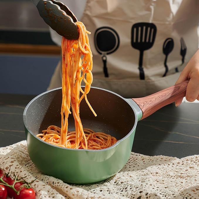 • 60-Second Heat, Flawless Cooking: The triple-layer aluminum base heats 30% faster than ordinary pans, spreading warmth evenly on induction, gas, electric, or halogen stoves. Simmer delicate hollandaise, melt chocolate, or boil milk without scorching. Perfect for multitasking in compact kitchens!