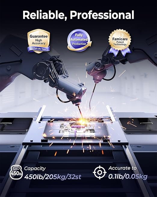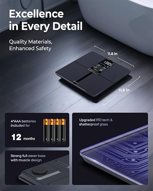 • Wider Platform & Safe Design: Our sturdy 11.8x11.8" scale, with a 450 lb capacity, features a full-cover base for stability, anti-slip pads, and shatterproof tempered glass for unmatched safety and durability