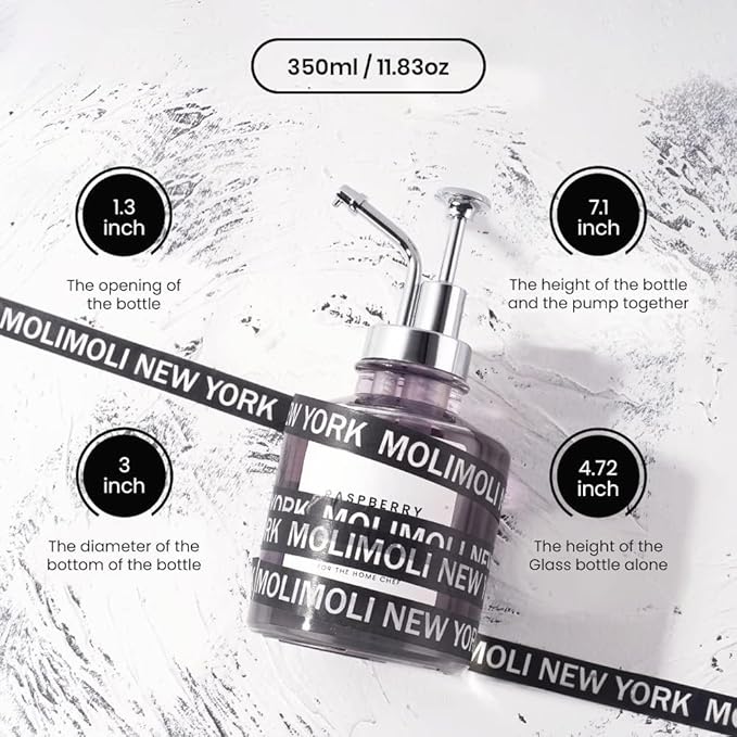 Molimoli (Upgraded Pump) Coffee Syrup Dispenser for Coffee Bar, Coffee Pump Dispenser, Glass Syrup Bottle w. Pump, 11.8 oz 350 ml, Set of 2, Silver
