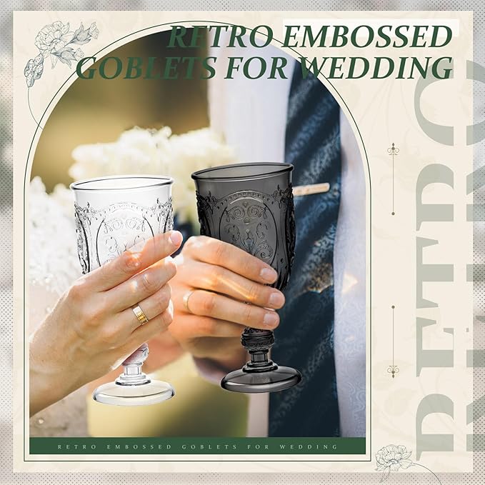 • Elegant Design: our vintage wine glasses set features a European vintage style and embossed design, comfortable to hold in the hand; Use our cups to sip your favorite drinks with your guests at your party and experience the irresistible vintage beauty, add a touch of elegance to your party and impress your guests