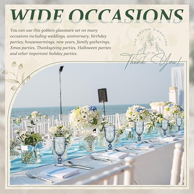 • Wide Occasions: you can use this plastic goblets set on many occasions including weddings, anniversary, birthday parties, housewarmings, new years, family gatherings, Xmas parties, Thanksgiving parties, Halloween parties and other important holiday parties