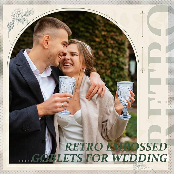 • Elegant Design: our vintage wine glasses set features a European vintage style and embossed design, comfortable to hold in the hand; Use our cups to sip your favorite drinks with your guests at your party and experience the irresistible vintage beauty, add a touch of elegance to your party and impress your guests