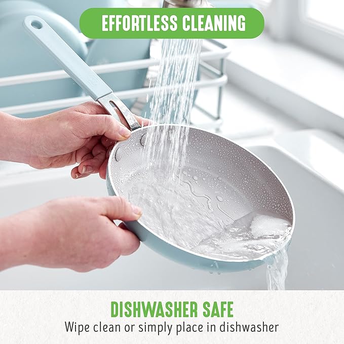 • TOXIN-FREE: Our healthy ceramic nonstick coating is derived from sand and free of PFAS, PFOA, lead, and cadmium for worry-free cooking.