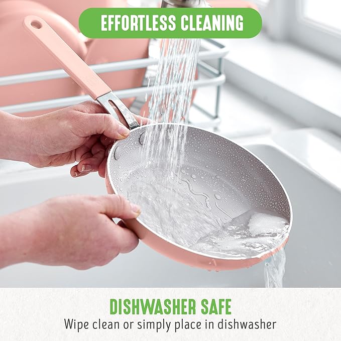 • TOXIN-FREE: Our healthy ceramic nonstick coating is derived from sand and free of PFAS, PFOA, lead, and cadmium for worry-free cooking.