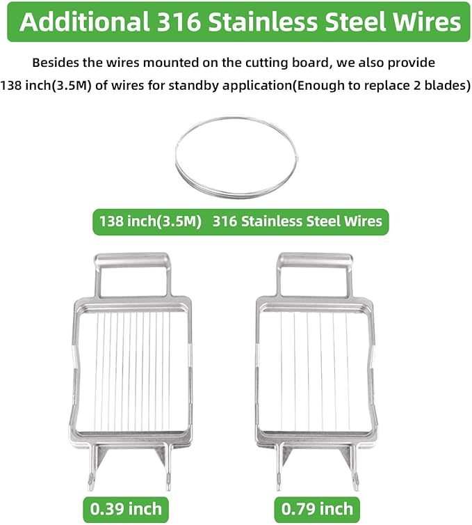 - 🧀【1 cm or 2 cm Thick Size】This cheese slicers for block cheese is designed with two replaceable wire cutting boards, making it capable of cutting your cheese 1cm (0.39") and 2cm (0.78") thick. And it is convenient and quick to switch the cutting size only by replacing the knife board. Get ready to cut the most perfectly shaped cheese, one slice at a time.