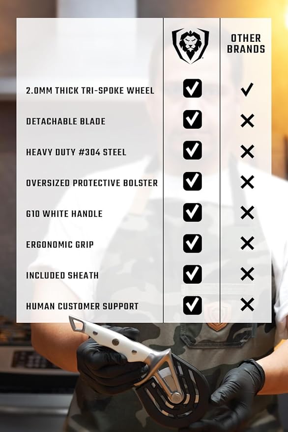 - PROFESSIONAL QUALITY: Featuring a ferociously sharp, reinforced, tri-spoke rotary wheel slicer design, the Dalstrong Orbit Razor Pizza Wheel offers drastically reduced drag to quickly and smoothly sail through even the heartiest and freshest thick or thin pizza crusts, flakey pastries, loaded flatbreads, quesadillas, pasta dough, and more with convenience and no effort