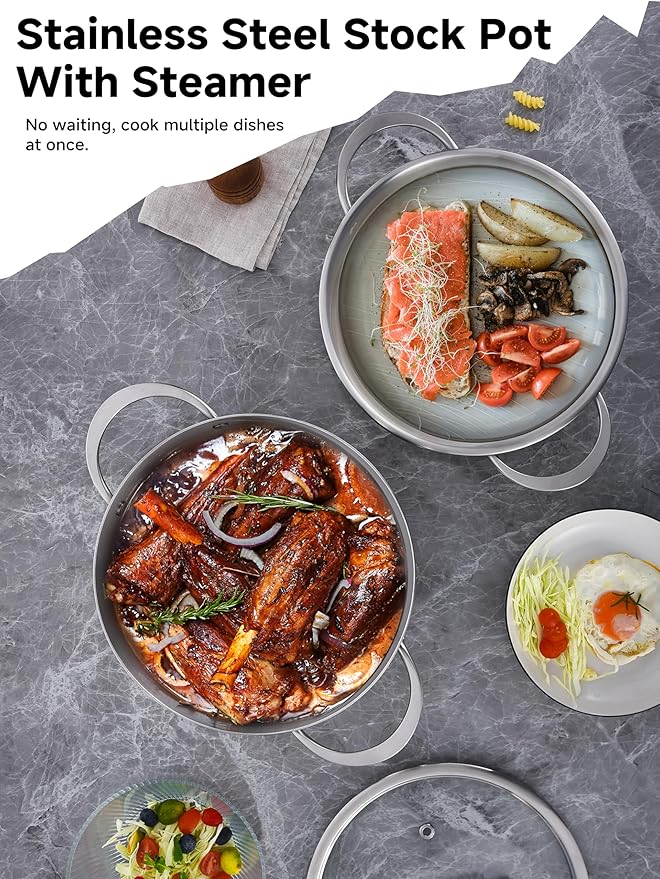 LOLYKITCH Tri-ply Stainless Steel 5 QT Stock Pot with Steamer,Induction Cooking Pot,Pots and Pans,Heavy Duty,Dishwasher and Oven Safe.