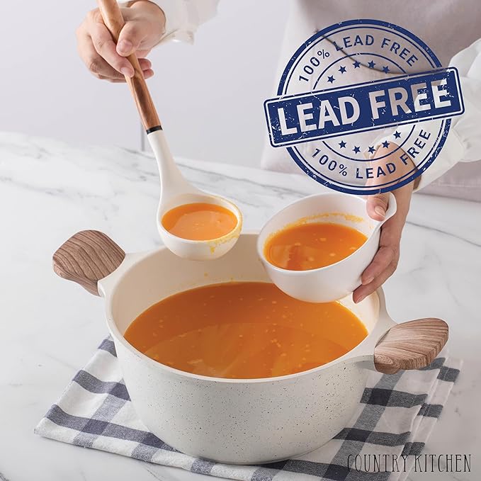 • SAFE COATING - Our Cast Aluminum pots and pans are non-toxic and safe to use for your everyday cooking. Cookware without the chemicals that can be used as a soup pot, sauce pan, skillet or non stick frying pan set. with superb food release and easy cleanup. Hand wash recommended to maintain the nonstick finish.