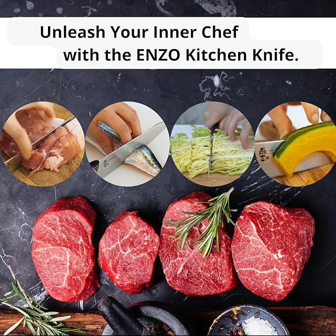 • Japanese Chef Knife by ENZO – Ideal for Professional and Home Use, Featuring a High-Quality Stainless Steel Blade and Ergonomic Handle. Hand-forged by skilled craftsmen in Tsubame-Sanjo, Niigata Prefecture. – Authentically Made in Japan