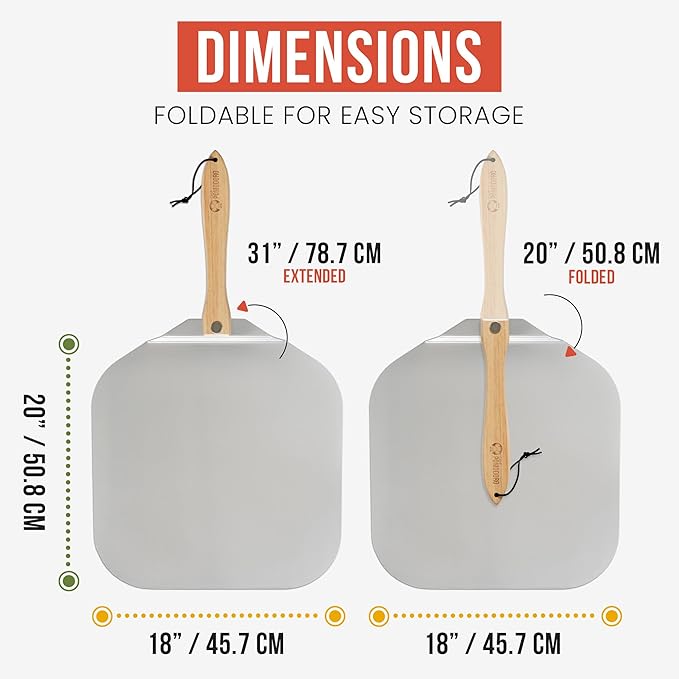 Chef Pomodoro Aluminum Metal Pizza Peel with Foldable Wood Handle for Easy Storage, Pizza Spatula, Gourmet Luxury Pizza Paddle for Baking Homemade Pizza Bread (18 x 20 inch)
