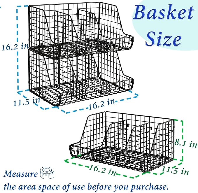• 【Flexible Stackable Usage】 The 2-Tier stackable can organizer features a flexible stacking design, allowing you to use each rack individually or stack them to fit your preferences and needs. It can be placed in a cabinet or on a countertop, maximizing your storage space. Each size: 16.2" L x 11.5" W x 8.1" H. Stacked size with two baskets: 16.2" L x 11.5" W x 16.2" H.