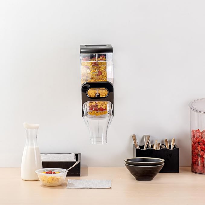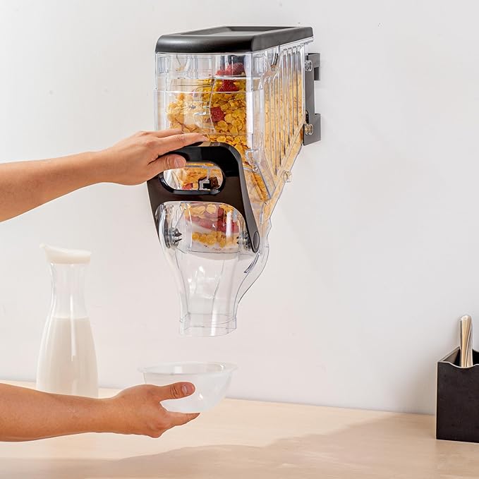 • STORE CEREAL IN STYLE: A great addition to your kitchen! This wall-mountable cereal dispenser is a practical and stylish way to store and dispense your favorite cereals while saving counter space.