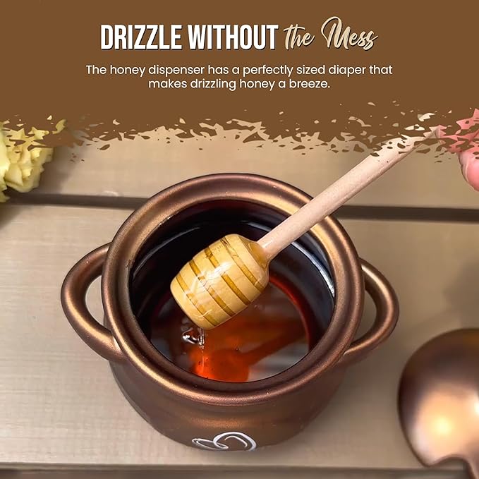 • ๐—ฃ๐—ฒ๐—ฟ๐—ณ๐—ฒ๐—ฐ๐˜ ๐—š๐—ถ๐—ณ๐˜ ๐—ณ๐—ผ๐—ฟ ๐—›๐—ผ๐—ป๐—ฒ๐˜† ๐—Ÿ๐—ผ๐˜ƒ๐—ฒ๐—ฟ๐˜€: Honey jars with dippers can make it a fantastic housewarming gift or a sweet surprise. This honey holder dispenser equates elegance with functionality because the honey pot can quickly become a statement piece that delights any honey lover. A Gift Full of Sweetness.