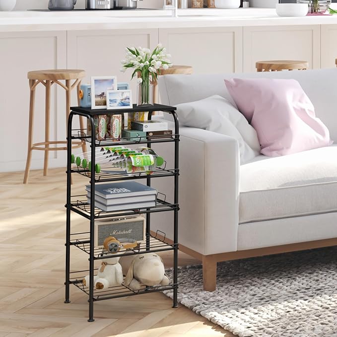 • 【Size & Material】This water bottle shelf measures 13.3"L*13.2"W*31"H, 5 tiers in total, each tier can hold 5-10 mineral water bottles or at least 10 cans. And this water bottle organizer rack is also made of high quality metal with anti-rust coating for durability, and each metal bar is welded firmly to each other.